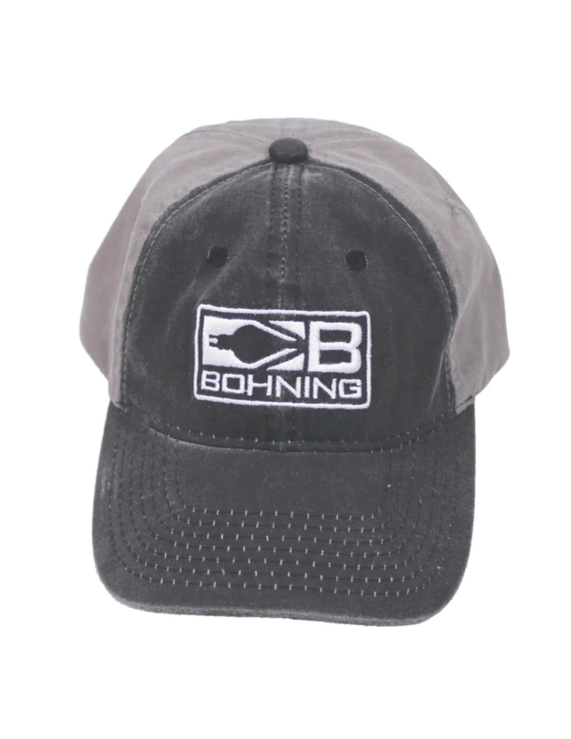 Wear your Bohning pride with our apparel line! Distressed gray hat with embroidered Bohning logo. Light gray mesh back with hook & loop closure.