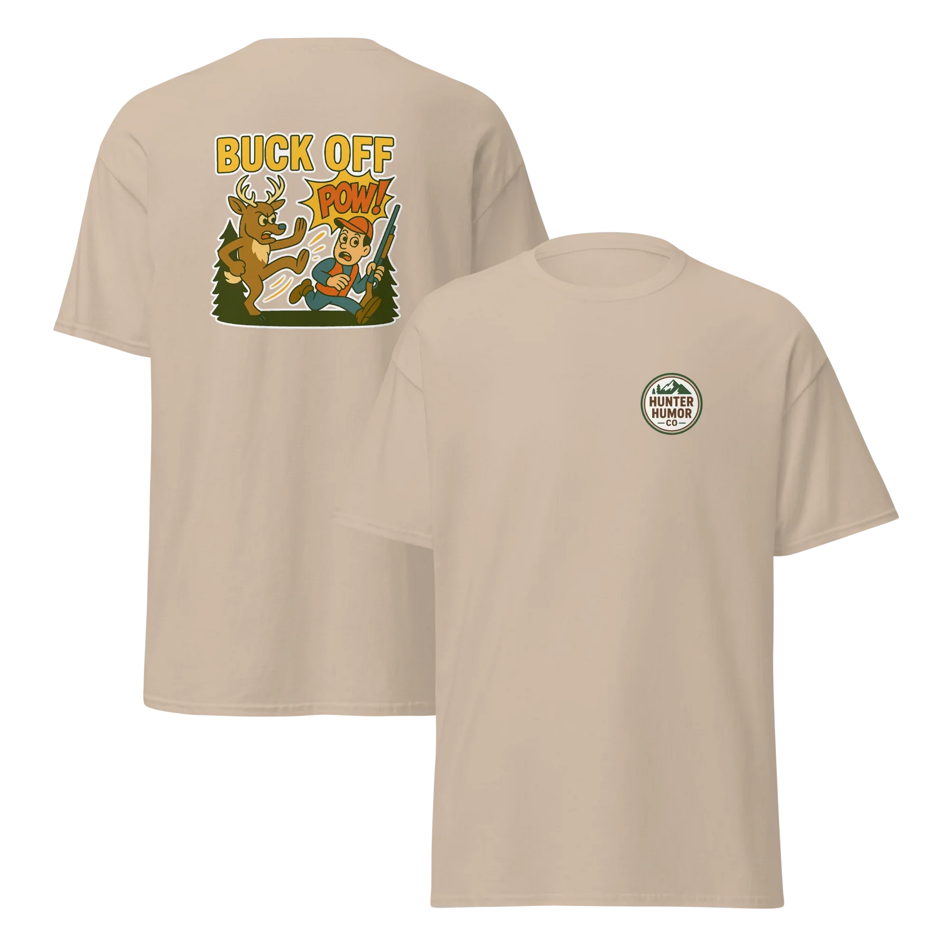 Show off your wild side with the Hunter Humor Buck Off T-Shirt. This playful tee blends outdoor spirit with a cheeky twist, perfect for hunters who love a good laugh. Crafted for comfort, it’s an ideal pick for casual wear or your next adventure in the great outdoors. Bring humor to the hunt and keep spirits high with this fun and stylish shirt.