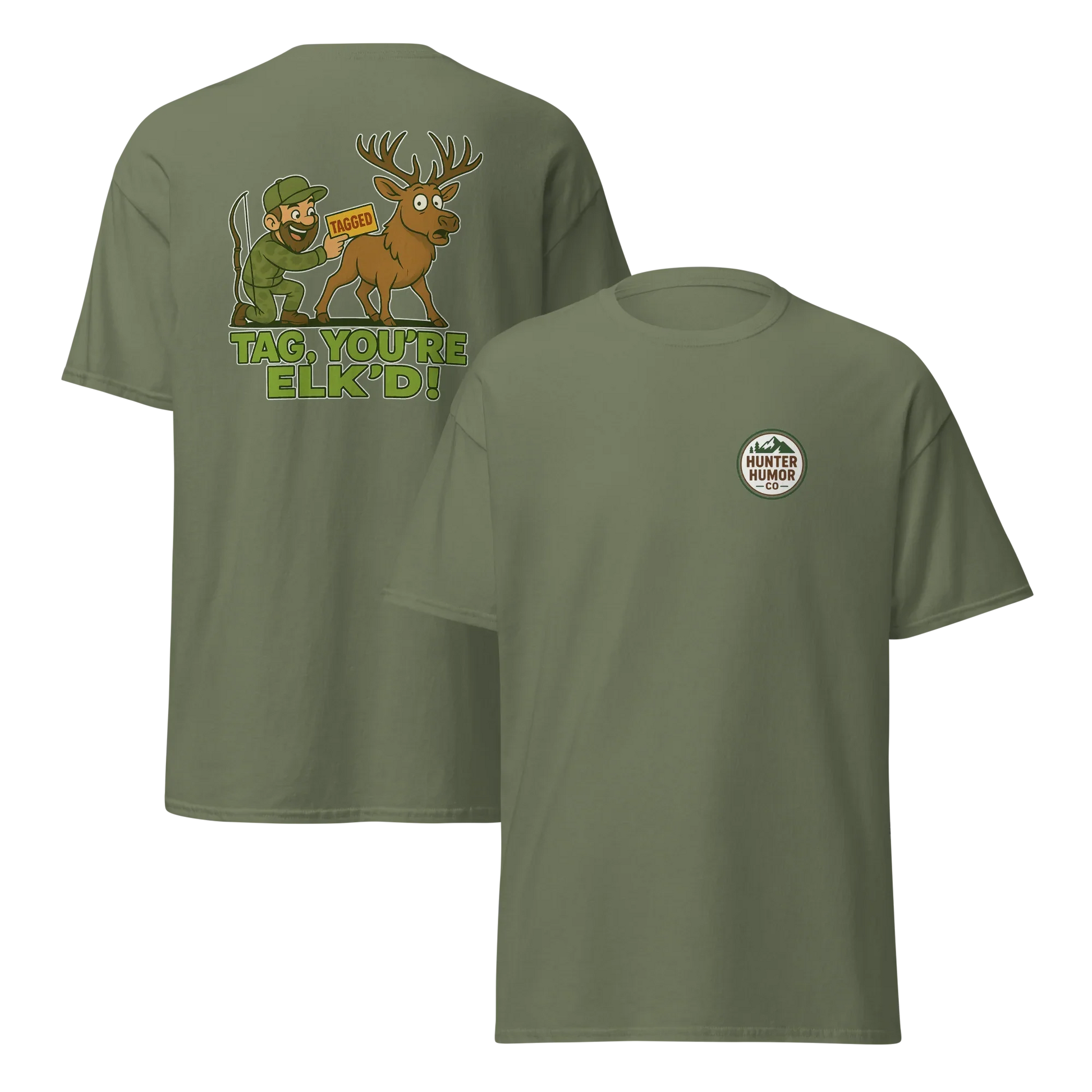 Get ready to turn heads with the Hunter Humor Tag, You're Elk'd T-Shirt—where wit meets wild style. Perfect for anyone who loves a good pun and the great outdoors, this tee brings a playful twist to your wardrobe. Comfortable and fun, it’s sure to be a conversation starter wherever you go!